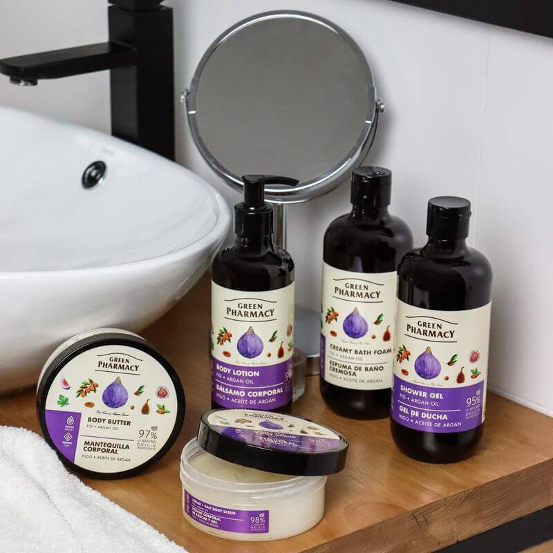 - Fig extract gives the skin softness and velvety smoothness, exfoliates dead skin cells, improves the color and evens out the skin tone