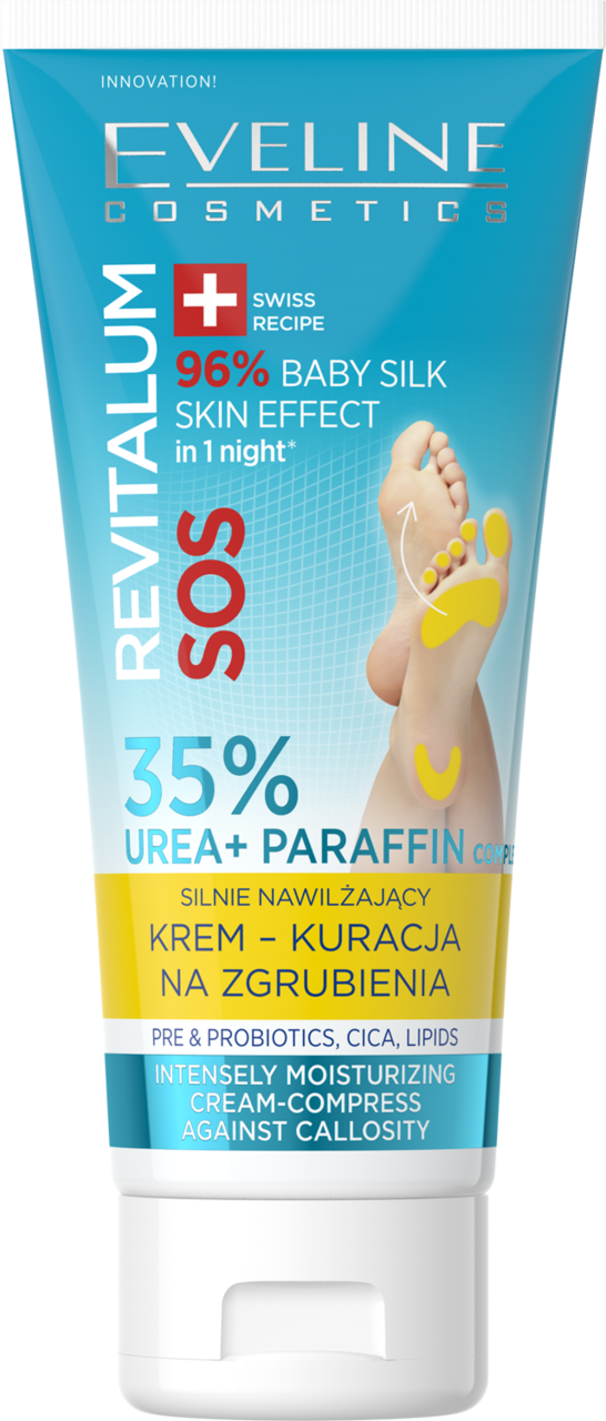 The most effective cream for calluses combines powerful exfoliation with deep, restorative hydration. Eveline Revitalum SOS exemplifies this dual-action approach. Its primary strength lies in the high concentration 35% urea cream for heels, a gold-standard ingredient for combating hyperkeratosis. Urea not only dissolves hardened skin but also draws moisture deep into the epidermis. The formula is enhanced with paraffin, which seals in moisture, and CICA, which soothes and repairs. This comprehensive strategy makes it a superior choice for an effective overnight foot treatment.