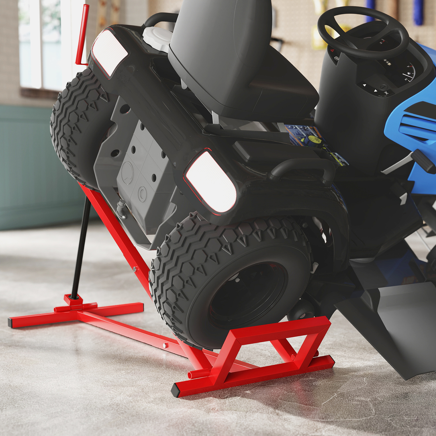 HOMCOM 400 kg Foldable Ride-On Mower Jack Lift, Adjustable Steel Lifting Device, for Lawn Mower, ATV, Red