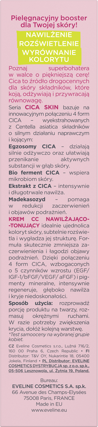 - Experience the fusion of advanced skincare and makeup with the Cica Skin CC Cream. This sophisticated formula, powered by four forms of CICA and five growth factors, delivers intense hydration while perfecting your complexion.