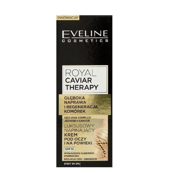 Luxurious tensing Eveline eye and eyelid cream, available in the UK, provides advanced correction of aging signs and sleep deficit through the use of innovative technology based on: stimulating DNA damage repair, improving tissue microcirculation, raising the falling eyes corners.