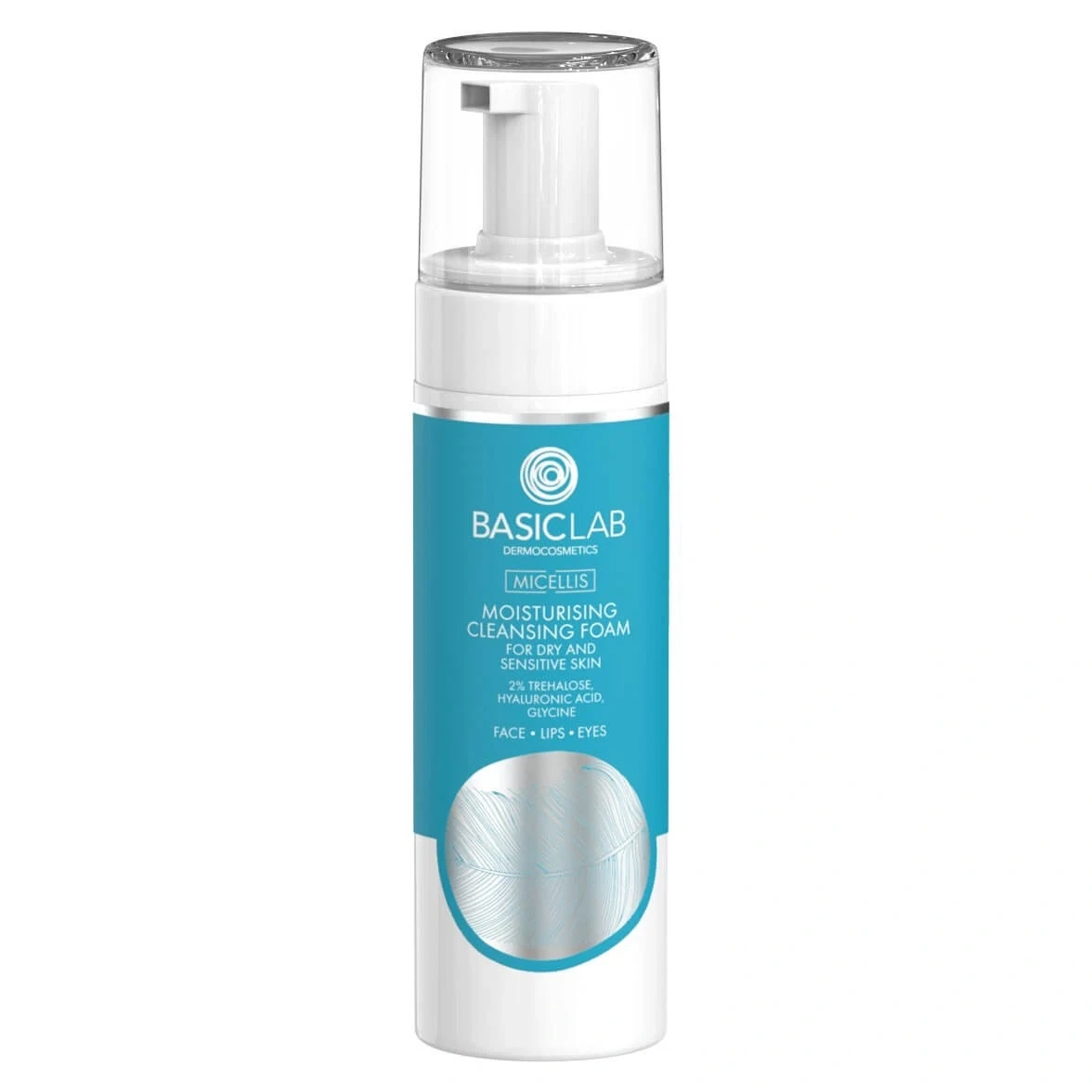 BasicLab Micellis Moisturizing Cleansing Foam 2% Trehalose Hyaluronic Acid Glycine for Dry and Sensitive Skin 150ml
