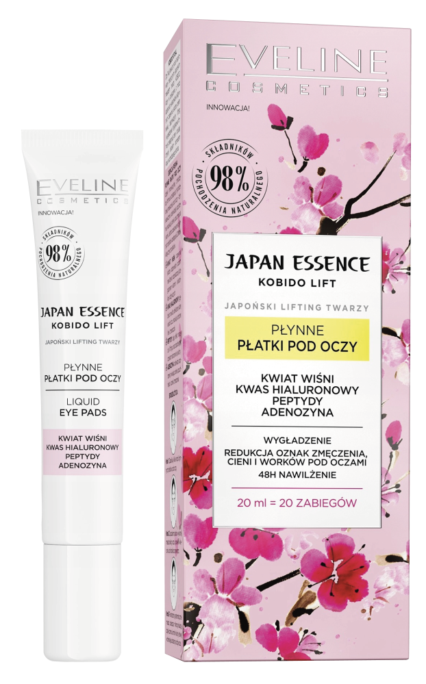 The liquid eye pads formula contains, among others, cherry blossom, which will take care of skin's proper hydration and nourishment. Hyaluronic acid will keep you hydrated and reduce fine lines and wrinkles. The peptides present in the recipe have a lifting and rejuvenating effect. Adenosine adds vitality and energy to the look, removes dark circles and puffiness. The entire Japan Essence series is available for purchase at our Polish drugstore in the UK, please check out Eveline's tab.
