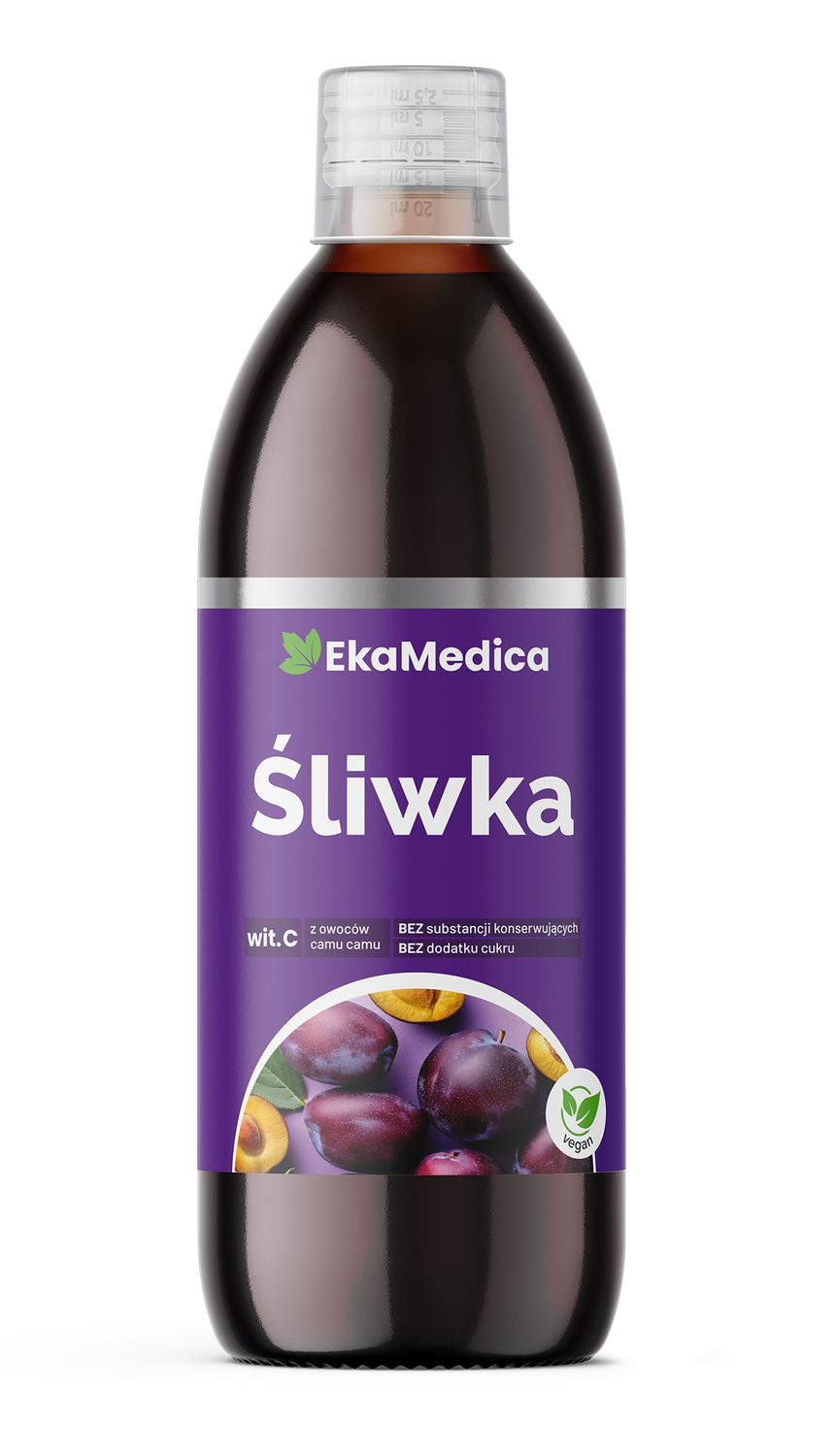 Dried plum - a liquid dietary supplement, made of 100% dried plum fruit juice with the vitamin C addition from the camu-camu fruit extract. Pasteurized, no added sugar - contains naturally occurring sugars.
