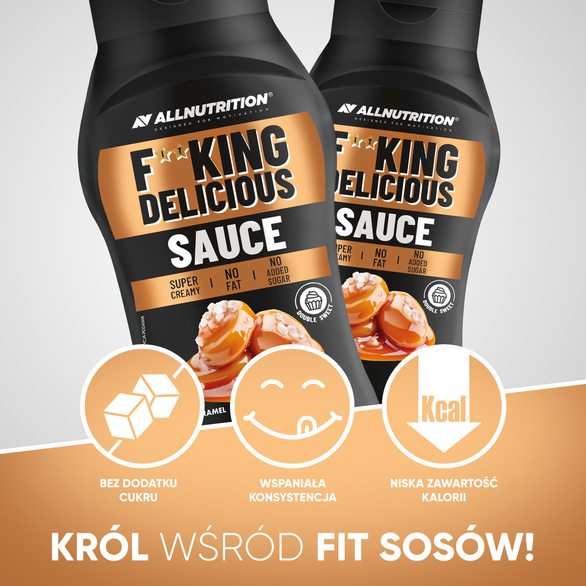 - AllNutrition Fitking Delicious Sauce Caramel is a sweet sauce with no added sugar or fat, which will perfectly diversify your desserts, oatmeal, omelets or coffee, while maintaining a low calorie content.