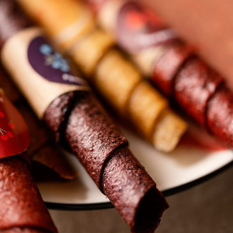 Honey Bites are a tasty snack, full of fruit and honey. Honey Bites are jelly sweets - a fruit snack ideal for chewing. The jelly consistency is created thanks to the apple. The apple in Honey Bites is baked with the skin, which allows for the maximum use of all its goodness. Add fresh or frozen fruit and a little honey, nothing more! The whole thing has been slowly dried at a temperature of approx. 40 degrees.