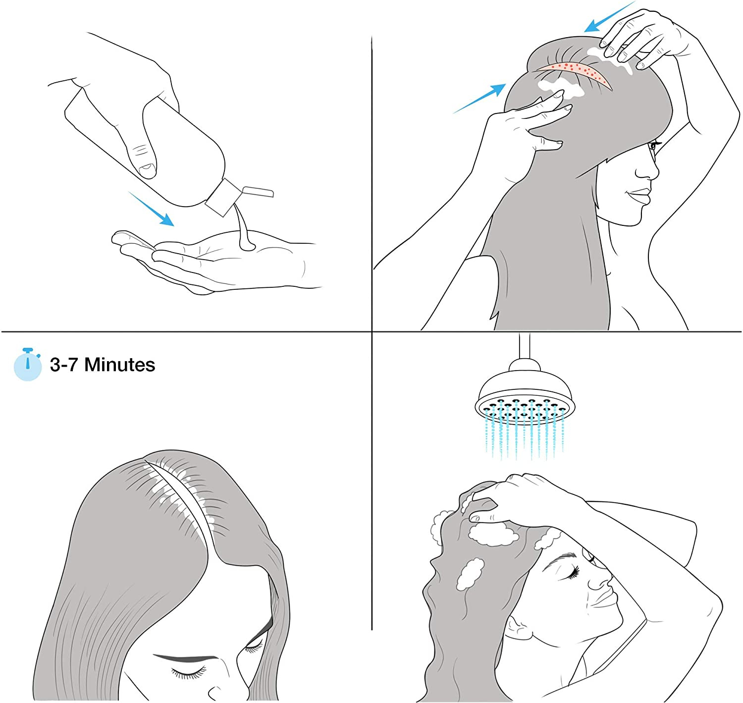 Apply the shampoo on the scalp and hair. Leave the shampoo on the head for about 3-7 minutes. Rinse, remember to systematically control changes on the skin.