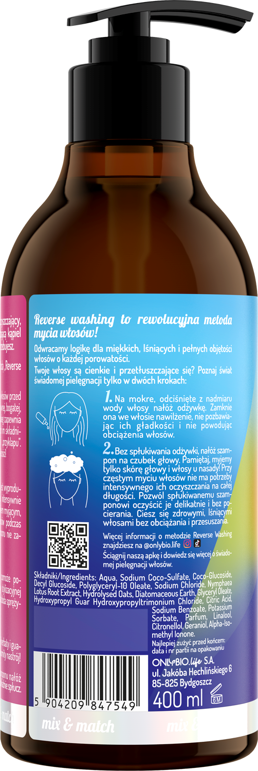 - Strong shampoo from the Reverse hair washing line from Onlybio will perfectly complement your care routine, regardless of the porosity of your hair. Its vegan formula contains diatomaceous earth to help you get rid of superstructures.