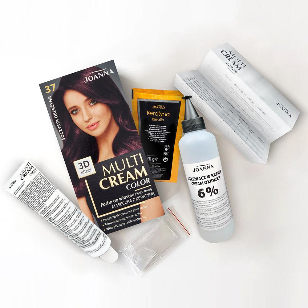 The modern technology and innovative ingredients provide the hair with an extremely shiny and durable color and perfect gray coverage. The rich formula has been designed to provide your hair with exceptional protection and intensive care. Thanks to this, they will remain in great condition, gain vitality and a silky shine. The Multi Cream hair dye by Joanna has a wide range of colors, for more shades see our website with Polish cosmetics in the UK.