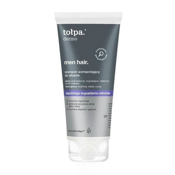 - Dermo Men Hair Anti-Hair Loss Strengthening Shampoo effectively cleans the scalp and hair of impurities, excess sebum and residues of styling agents. Product combats the signs of aging hair: brittleness, dryness, dullness and hair loss.