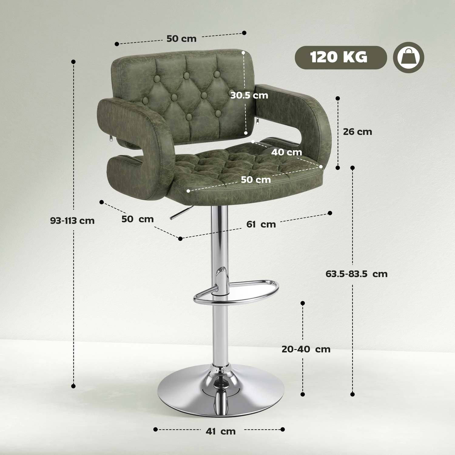 HOMCOM PU Leather Upholstered Swivel Bar Stool, Height Adjustable with Back, Armrest, Footrest, Green