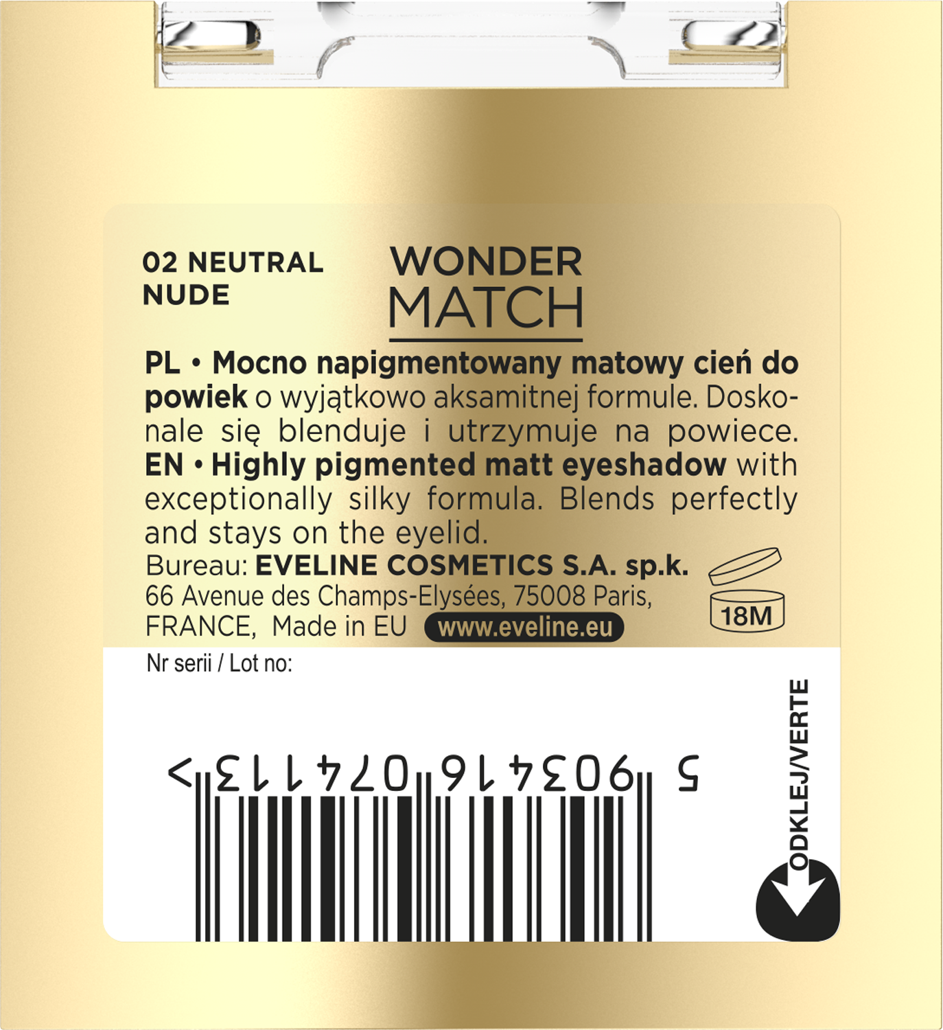 Eveline Wonder Match Mono Eyeshadow No. 02 Neutral Nude 1 Piece