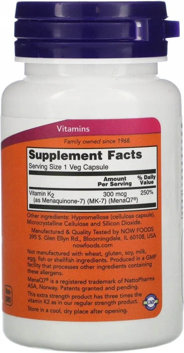 Vitamin K - menaquinone (from natto - non-GMO soy), filler - rice flour, capsule material - cellulose, antioxidant - ascorbyl palmitate, anti-caking agent - silicon oxide.