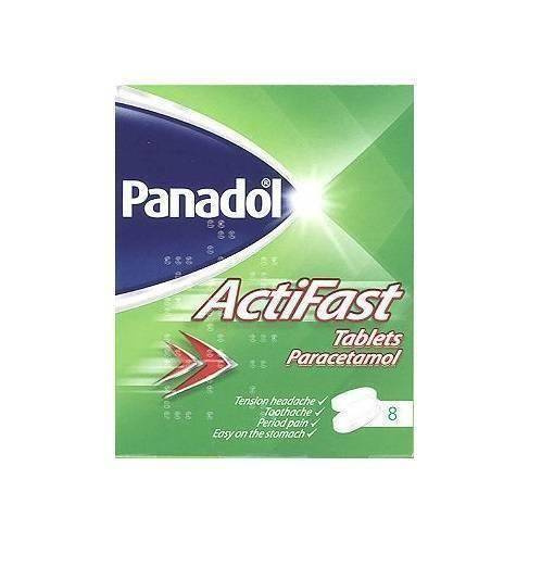 Panadol Actifast is used for fast pain relief of headaches including migraine and tension headaches, toothache, backache, rheumatic and muscle pain and period pain. It also relieves sore throat and feverishness, aches and pains of cold and flu.