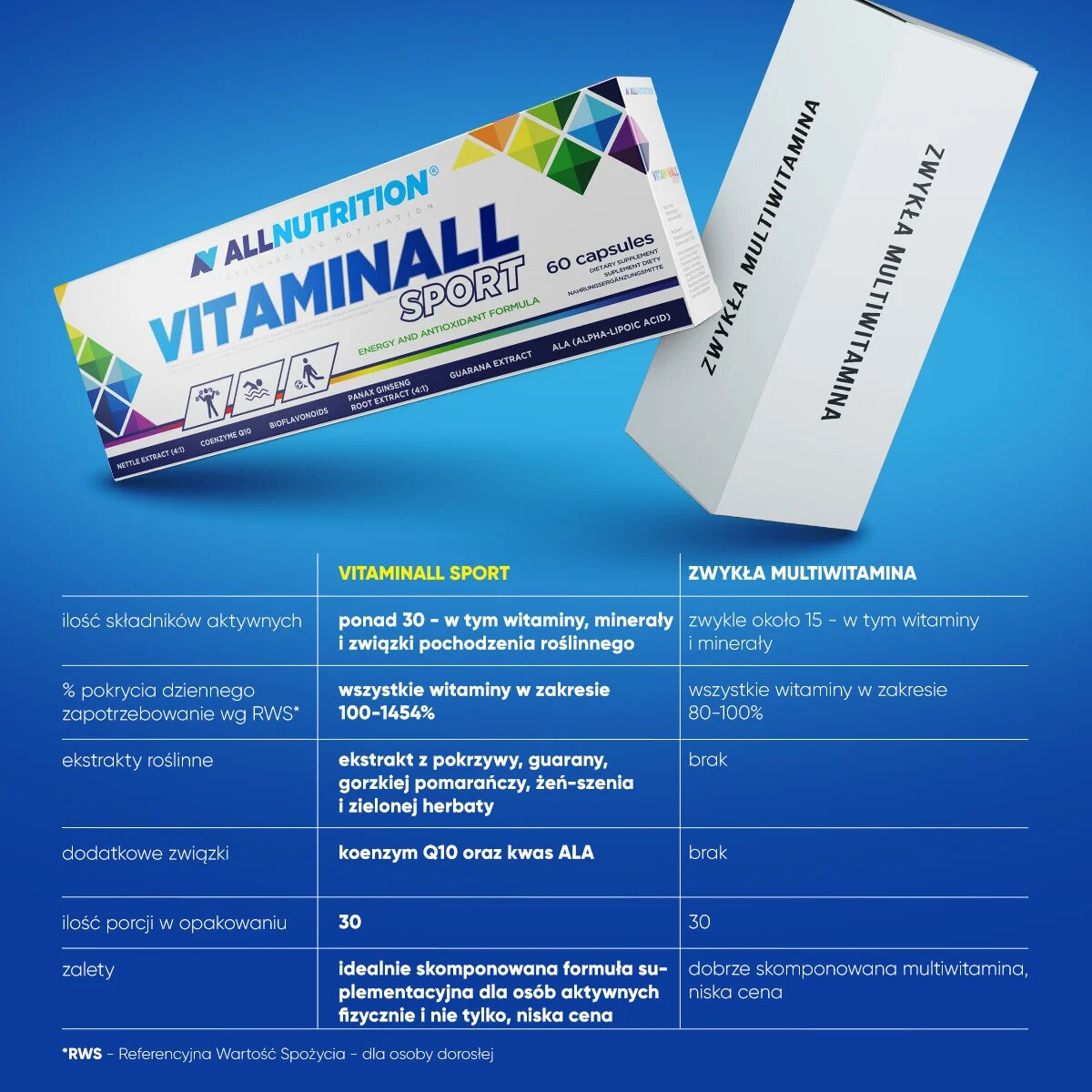 - Vitaminall helps maintain optimal energy level, mental well-being and good health. It has an unique formula in a blister pack. It also improves concentration, coordination and alertness. Vitaminall accelerates regeneration as well.