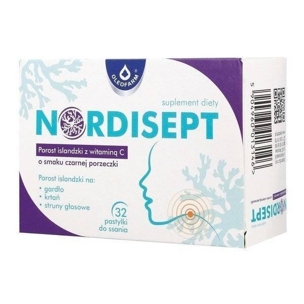 Oleofarm Nordisept Iceland Lichen With Vitamin C Throat Larynx Voice Cords 32Pas.