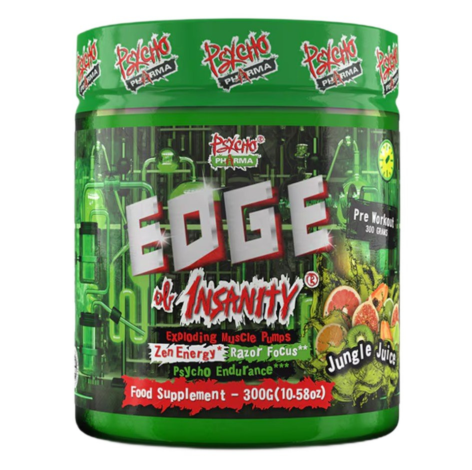 - Psycho Pharma Edge of Insanity is a highly dosed pre-workout powder designed for advanced athletes. This maximum power formula provides intense energy, focus, and explosive performance in a 300g container, imported directly from the USA.