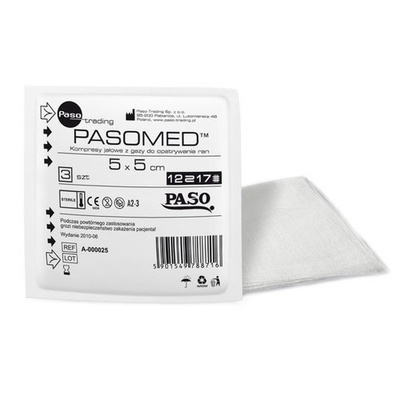 Kompresy jałowe 5X5 cm 3 Szt. Opatrywanie Ran 17-nitkowa