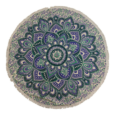 Small Mandala Roundie Cotton Art (130cm) - Peacock Blues