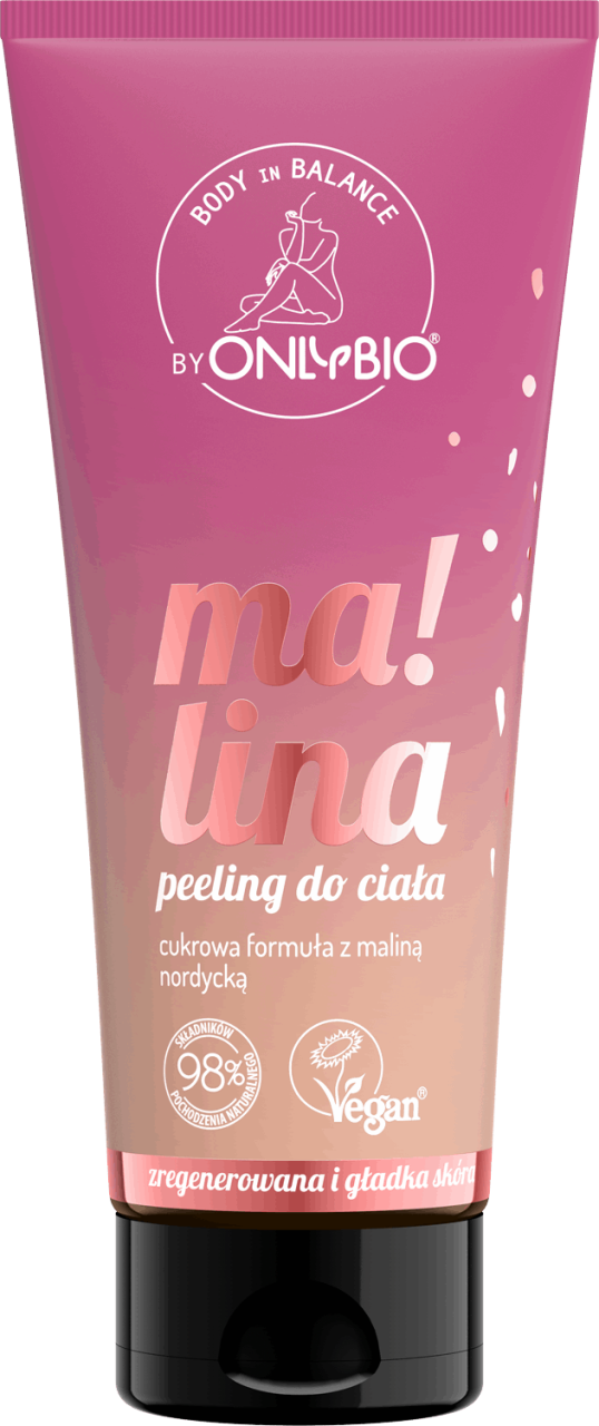 - Malinowy peeling do ciała działa łagodnie, a zarazem skutecznie. To zasługa starannie dobranych, wegańskich składników, które w 98% są pochodzenia naturalnego. Zawarta w formule malina nordycka uelastycznia skórę oraz przywraca jej gładkość.