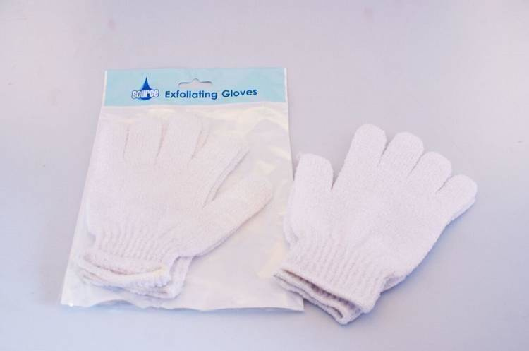 - Rękawiczki złuszczające pomagają usunąć suchą skórę, aby uzyskać efekt miękkości. Używaj rękawiczek na mokro, z mydłem lub bez, masując skórę delikatnymi okrężnymi ruchami. Po użyciu dokładnie wypłukać rękawice czystą wodą.