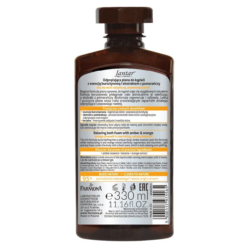 Jantar Odprężająca Piana do Kąpieli z Bursztynem i Pomarańczą 330ml