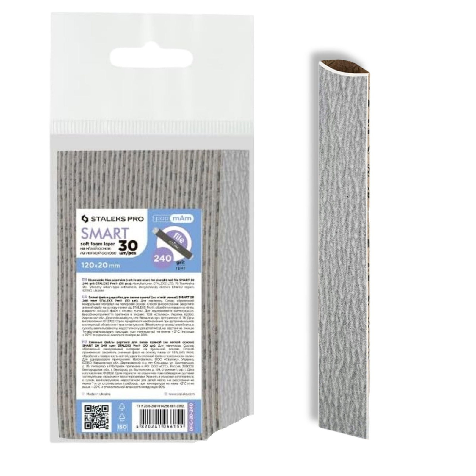 Staleks Pro Smart 20 PapmAm Soft Disposable Abrasive Files With Foam Layer Straight Shape 240 Grit -DFC-20-240 Grit 30pcs