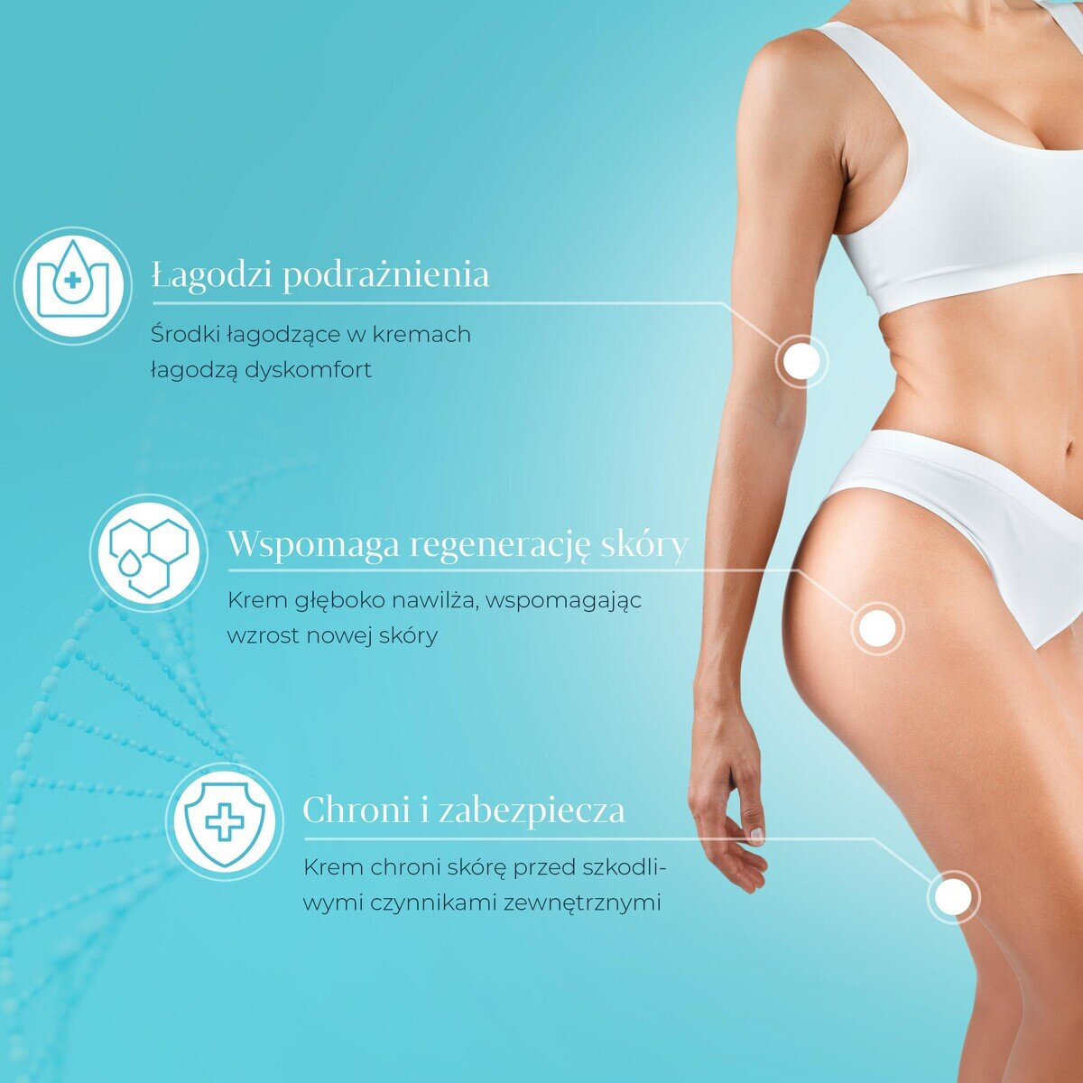 • prebiotyki, alantoina i panthenol wspomogą redukować łagodzenie podrażnień, odczucie swędzenia