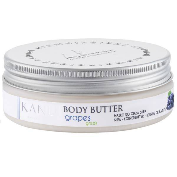 - Masło do ciała o zapachu winogrona greckiego zawiera odżywcze substancje z naturalnych składników. Masło shea wzbogacone leczniczym woskiem pszczelim, olejem winogronowym i olejem z awokado o znakomitych właściwościach pielęgnujących.