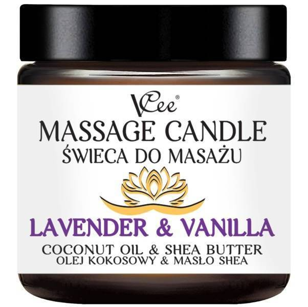 VCee Świeca do Masażu o Zapachu Lawendy i Wanilii z Olejem Kokosowym i Masłem Shea 80g