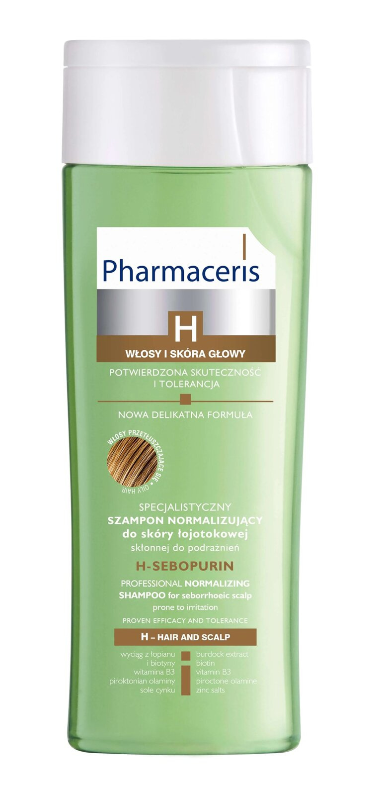 - Szampon Pharmaceris do codziennej pielęgnacji łojotokowej skóry głowy i włosów przetłuszczających się.