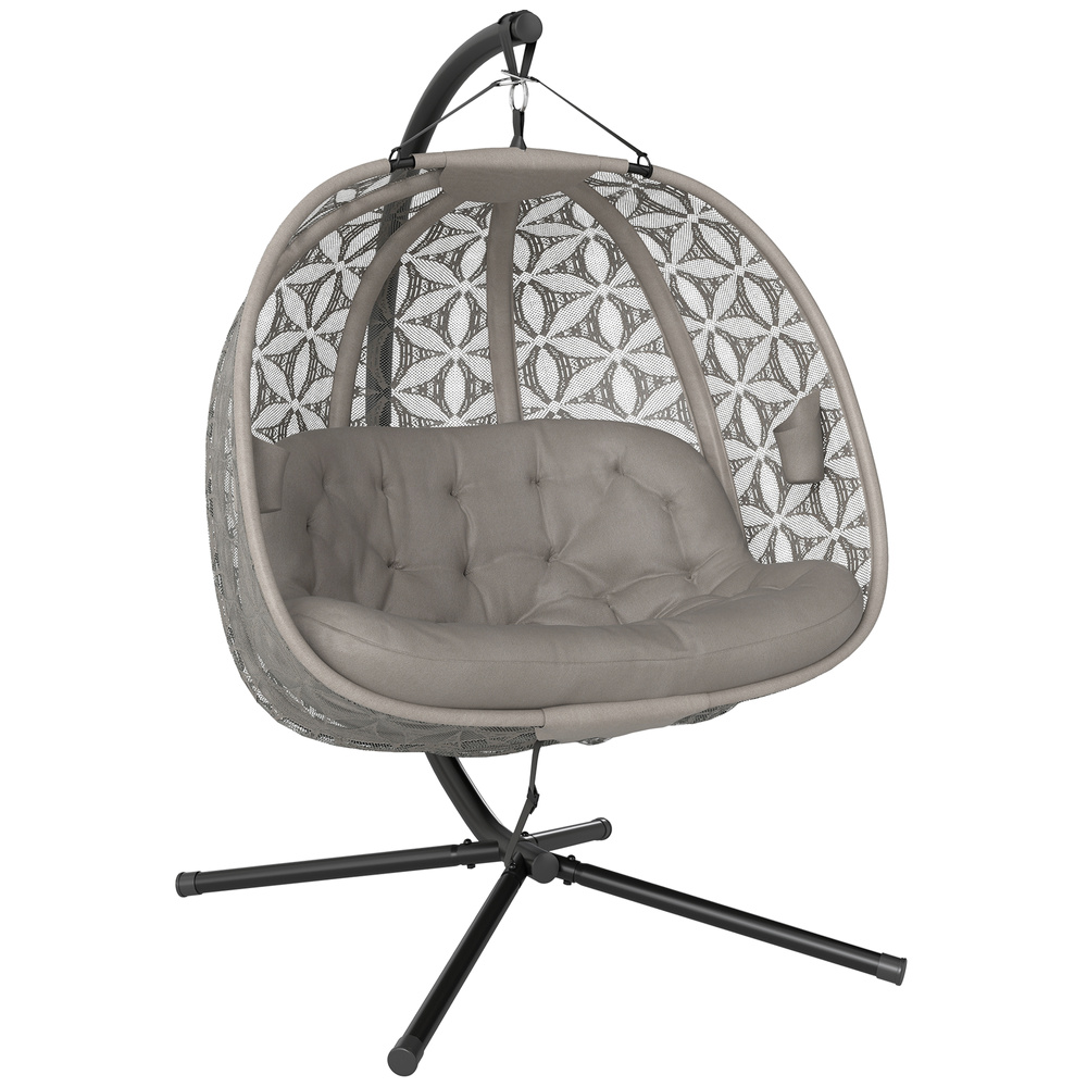 Outsunny Outdoor Double Hanging Chair with Cushion and Cup Holders, Sand Brown