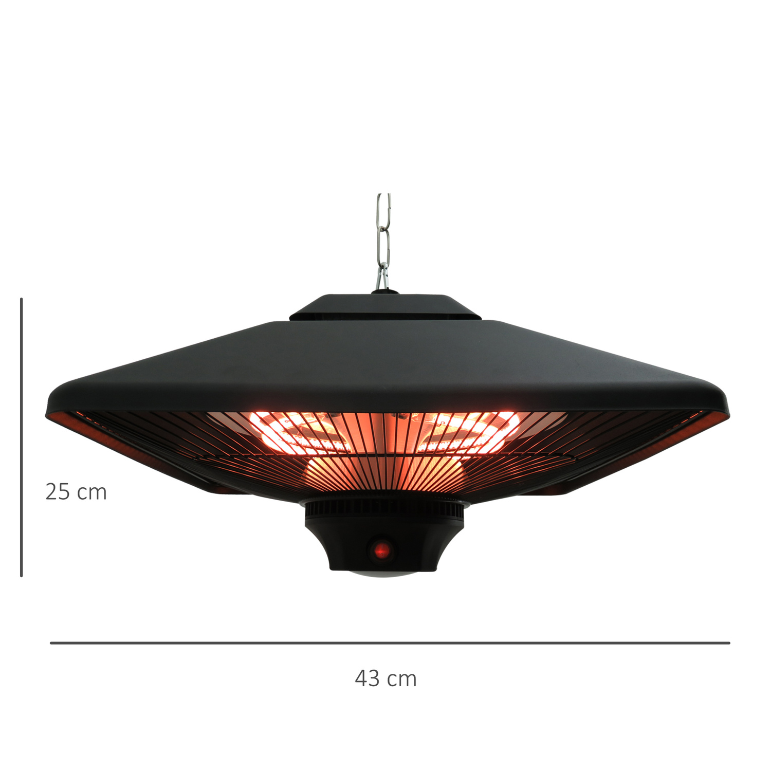Outsunny Hanging Electric Patio Heater with 2 Power Settings, 1000/2000W Waterproof Ceiling Mounted Aluminium Halogen Infrared Outdoor Heater Warmer with LED Light and Remote Control, Black