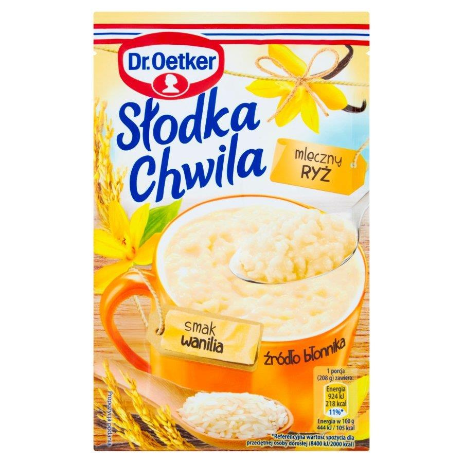 - Mleczny ryż Słodka Chwila to pyszna i sycąca przekąska zarówno dla dzieci, jak i dla dorosłych. Warto ją mieć zawsze przy sobie, kiedy mamy ochotę przekąsić w ciągu dnia coś niewielkiego, pożywnego, ale również słodkiego.