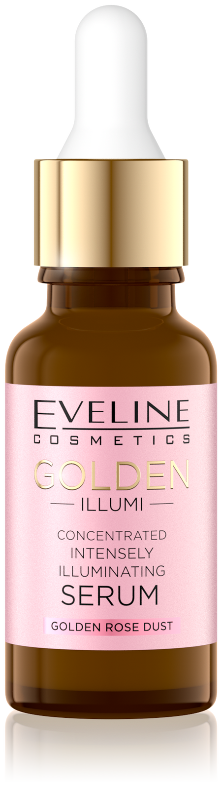 Eveline Golden Illumi to luksusowe, skoncentrowane serum do twarzy, które przywraca skórze promienny, zdrowy blask i wyraźnie poprawia jej kondycję już od pierwszego użycia. Zaawansowana formuła oparta na egzosomach młodości oraz 24-karatowym złocie działa wielowymiarowo – wygładza, ujędrnia i intensywnie odżywia skórę, nadając jej efekt świeżości i młodzieńczego glow.