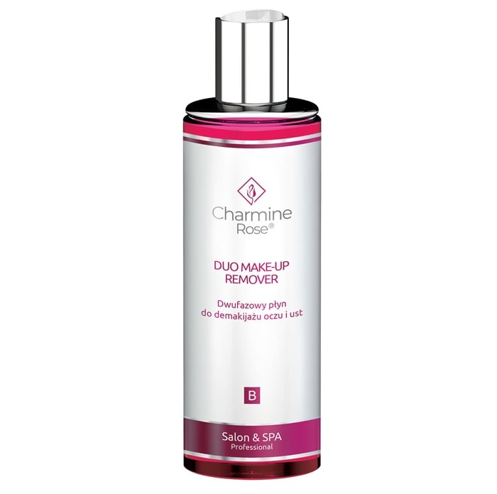 - Profesjonalny dwufazowy płyn do demakijażu, który bezkompromisowo usuwa makijaż wodoodporny. Formuła z witaminą E, alantoiną i D-pantenolem gwarantuje skuteczność, łagodząc podrażnienia i pielęgnując delikatną skórę wokół oczu i ust.