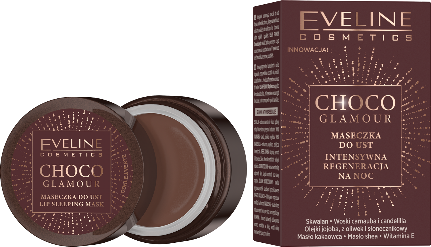 Problem spierzchniętych, suchych i podrażnionych ust wymaga specjalistycznego, nocnego działania. Intensywnie regenerująca maseczka do ust Eveline Choco Glamour to profesjonalna kuracja, która wykorzystuje nocny cykl odnowy skóry, aby dostarczyć maksymalną dawkę odżywienia i nawilżenia. Jej bogata, wegańska formuła otula wargi, tworząc na nich ochronną warstwę, która aktywnie pracuje, gdy śpisz.
