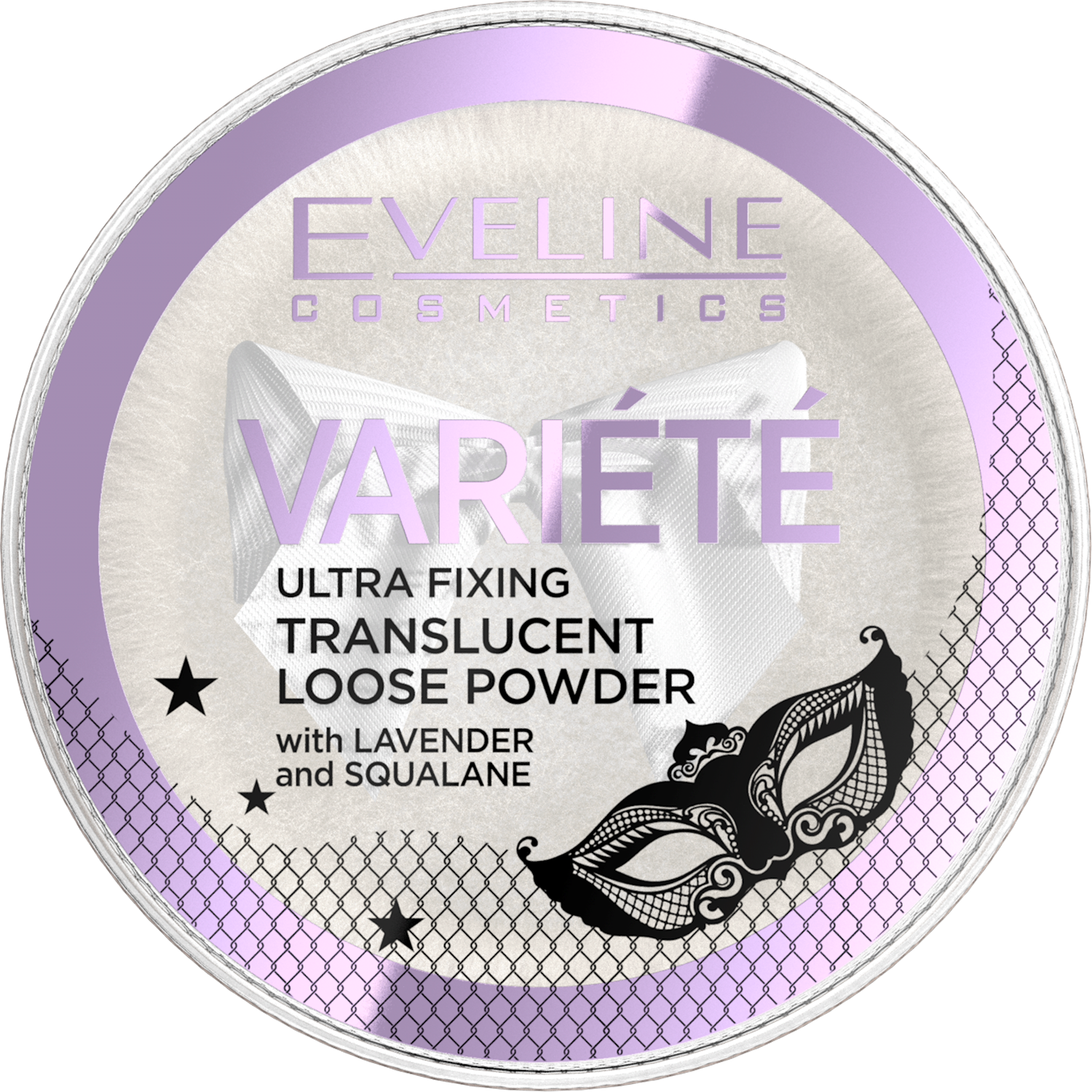 Eveline Variete Ultra Fixing Transparentny Sypki Puder do Twarzy z Matowym Wykończeniem Lavenda Skwalan 6ml