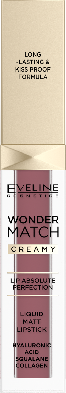 Wiele standardowych matowych pomadek może powodować wysuszenie ust, jednak Eveline Wonder Match stanowi wyjątek od tej reguły. Jej sekret tkwi w unikalnym połączeniu składników pielęgnacyjnych. To niewysuszająca matowa pomadka do ust, wzbogacona o kwas hialuronowy, który intensywnie nawilża i poprawia elastyczność warg. Skwalan dodatkowo regeneruje, wygładza drobne linie i chroni przed utratą wilgoci, a kolagen wspomaga odbudowę przesuszonego naskórka. Dzięki temu usta pozostają miękkie, gładkie i komfortowe przez cały czas noszenia makijażu.