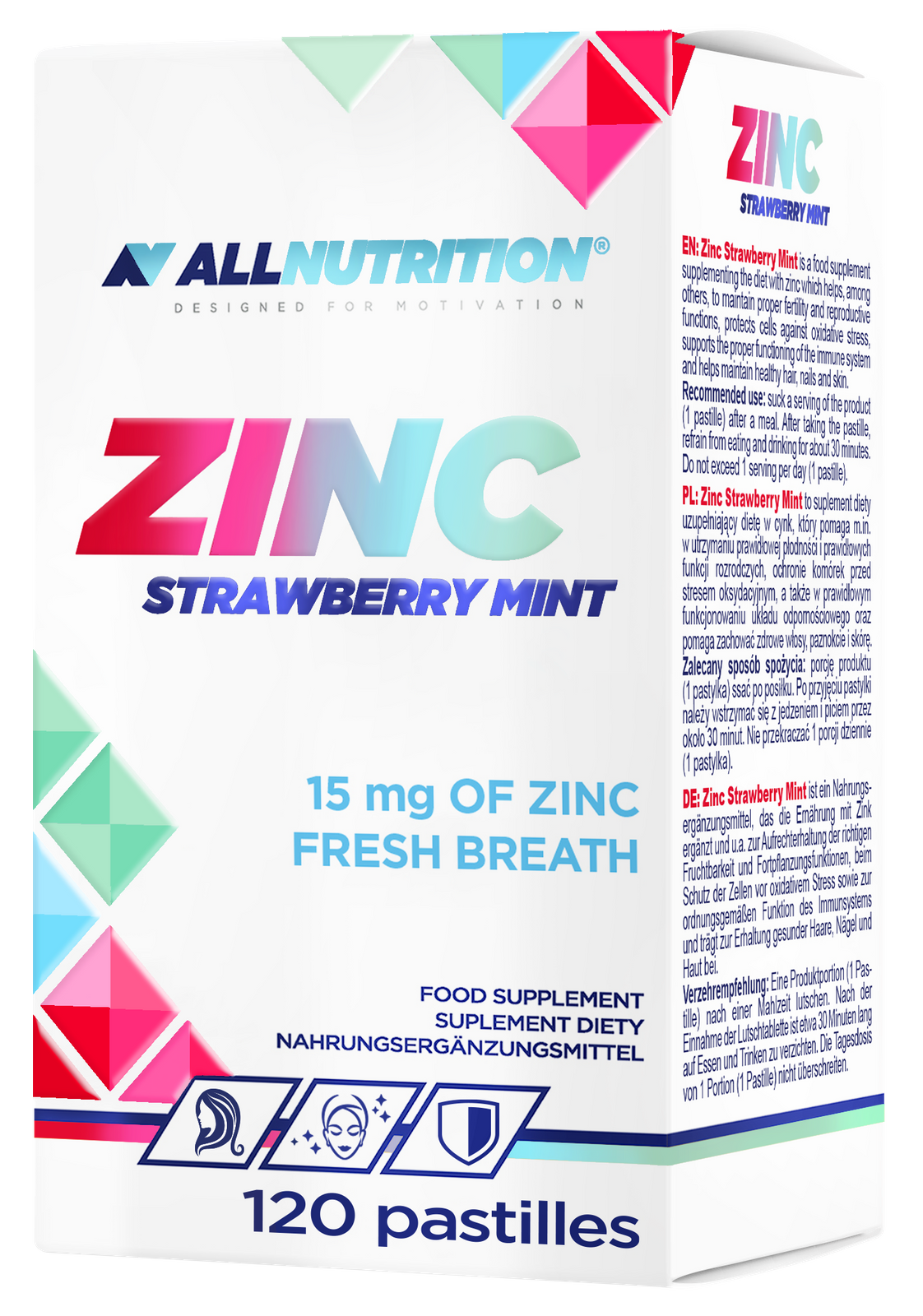 Allnutrition Zinc 15mg Wspomaga Układ Odpornościowy Truskawka Mięta 120 Pastylek
