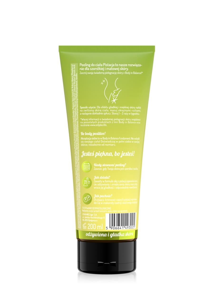 OnlyBio Body in Balance Pistacja – peeling do ciała, który wygładza, pielęgnuje i otula zmysłowym aromatem. Pokochaj swoją skórę każdego dnia!