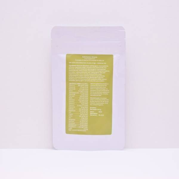 Kompleks zawiera 13 witamin i 12 minerałów, które wspomagają układ odpornościowy. Suplement diety do codziennego użytku zawierający: witaminę A, witaminę B1 i B2, niacynę, kwas pantotenowy, witaminę B6, kwas foliowy, biotynę, witaminę B i witaminę C.
