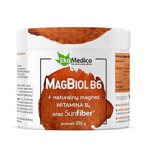 EkaMedica MagBiol B6 Magnez z Witaminą B6 oraz Błonnikiem Rozpuszczalnym Proszek Smak Czekoladowy 250g