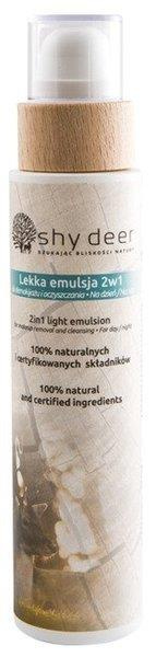 - Lekka emulsja do demakijażu i oczyszczania Shy Deer dzięki swojeje płynnej i lekkiej formule sprawdzi się w pielęgnacji każdego typu skóry. Skóra sucha będzie dobrze odżywiona i nawilżona, natomiast skóra mieszana lub tłusta będzie dogłębnie oczyszczona.