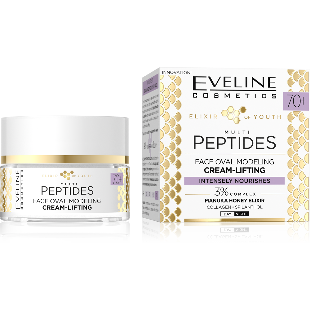 • Skoncentrowany krem-lifting z multi-peptydami, kolagenem i miodem manuka, stworzony dla skóry dojrzałej 70+. Skutecznie wspiera odbudowę struktury skóry, modeluje owal twarzy i redukuje widoczność zmarszczek.
