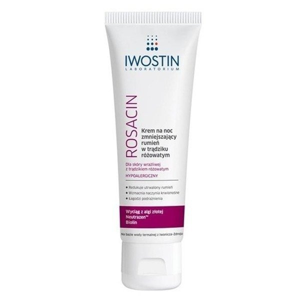 - Krem na noc zmniejszający rumień w trądziku różowatym. Produkt testowany dermatologicznie i alergologicznie.