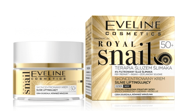 - Eveline Royal Snail skoncentrowany krem silnie liftingujący 50+ zapewnia kompleksową pielęgnację cery dojrzałej po 50. roku życia. Krem na dzień i na noc.