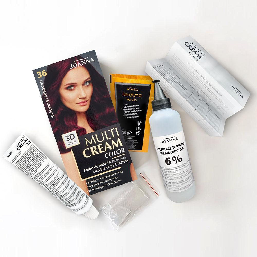 Joanna Multi Cream Trwały Intensywny Kolor Włosów Farba Pielęgnująca 36 Królewski Burgund 60x40x20g