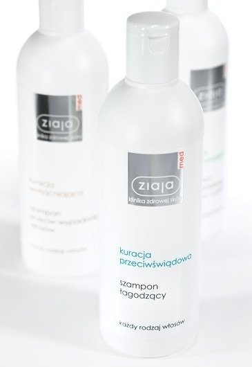 - Ziaja Med szampon eliminuje skutki świądu – swędzenie, podrażnienie, mrowienie. Reguluje złuszczanie naskórka. Utrzymuje długotrwałe nawilżenie i ochronę skóry i włosów. Przywraca naturalną równowagę wrażliwej skórze głowy.