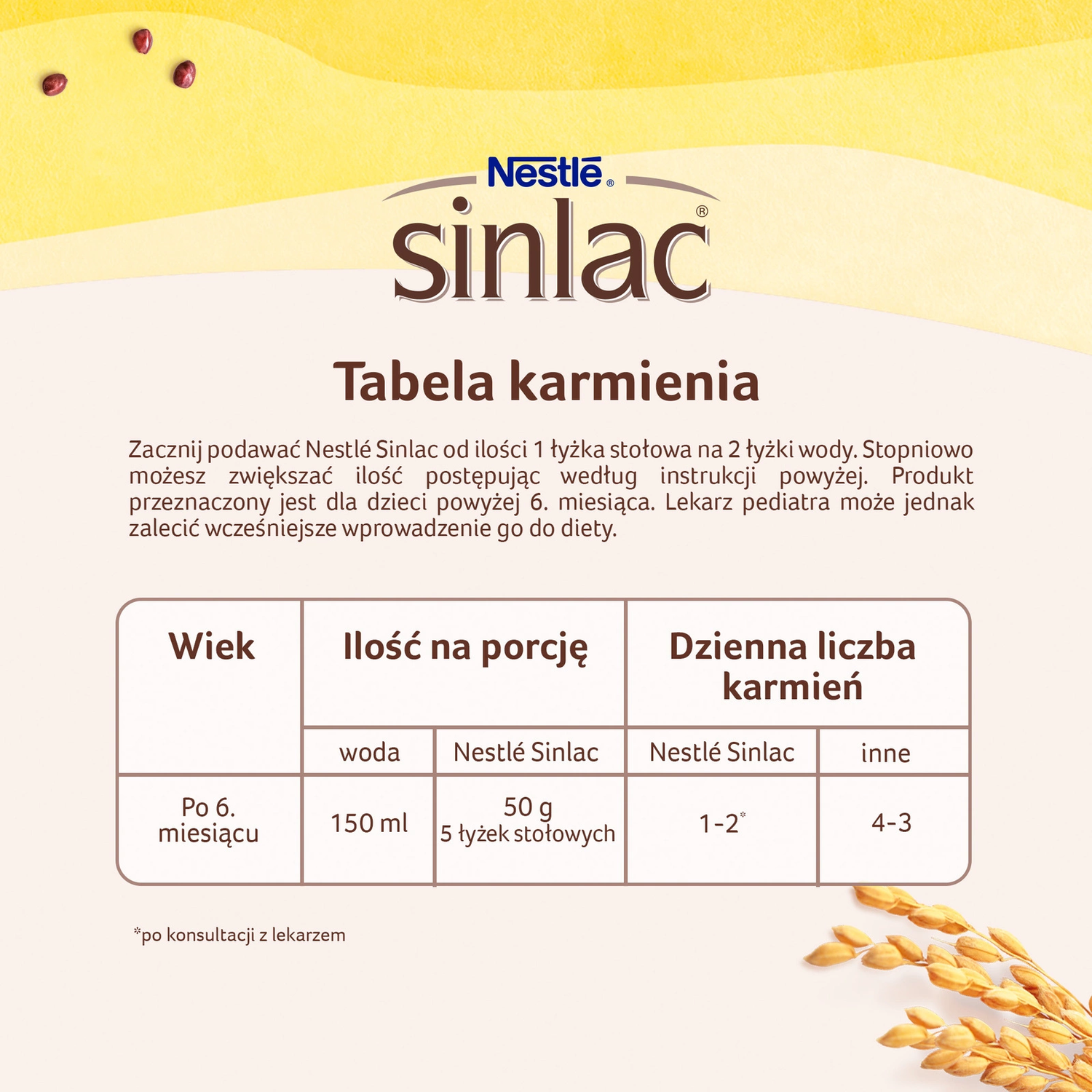 Teraz Nestlé Sinlac to unikalne połączenie naturalnego białka chleba świętojańskiego i mąki ryżowej z dodatkiem witamin i składników mineralnych (cynk, żelazo, wit. A i C) ważnych dla wsparcia odpornościi rozwoju dziecka oraz aminokwasów będących elementem budującym białka.